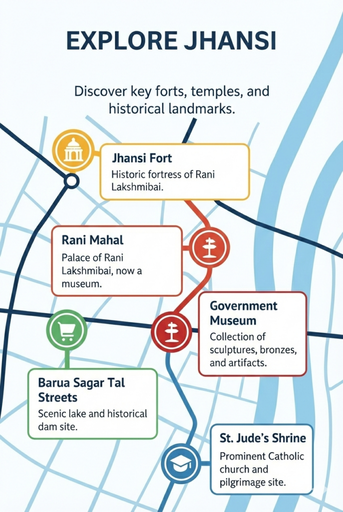 Jhansi serves as the gateway, blending history, modern life, and connectivity.